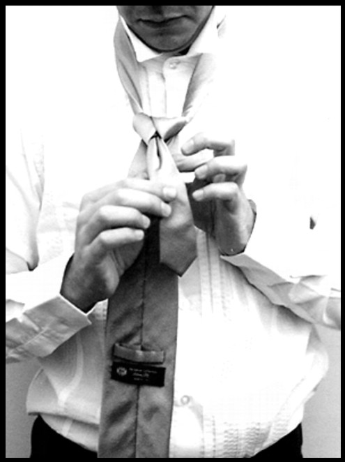 Dibujo de las instrucciones para hacer el nudo de la corbata.