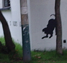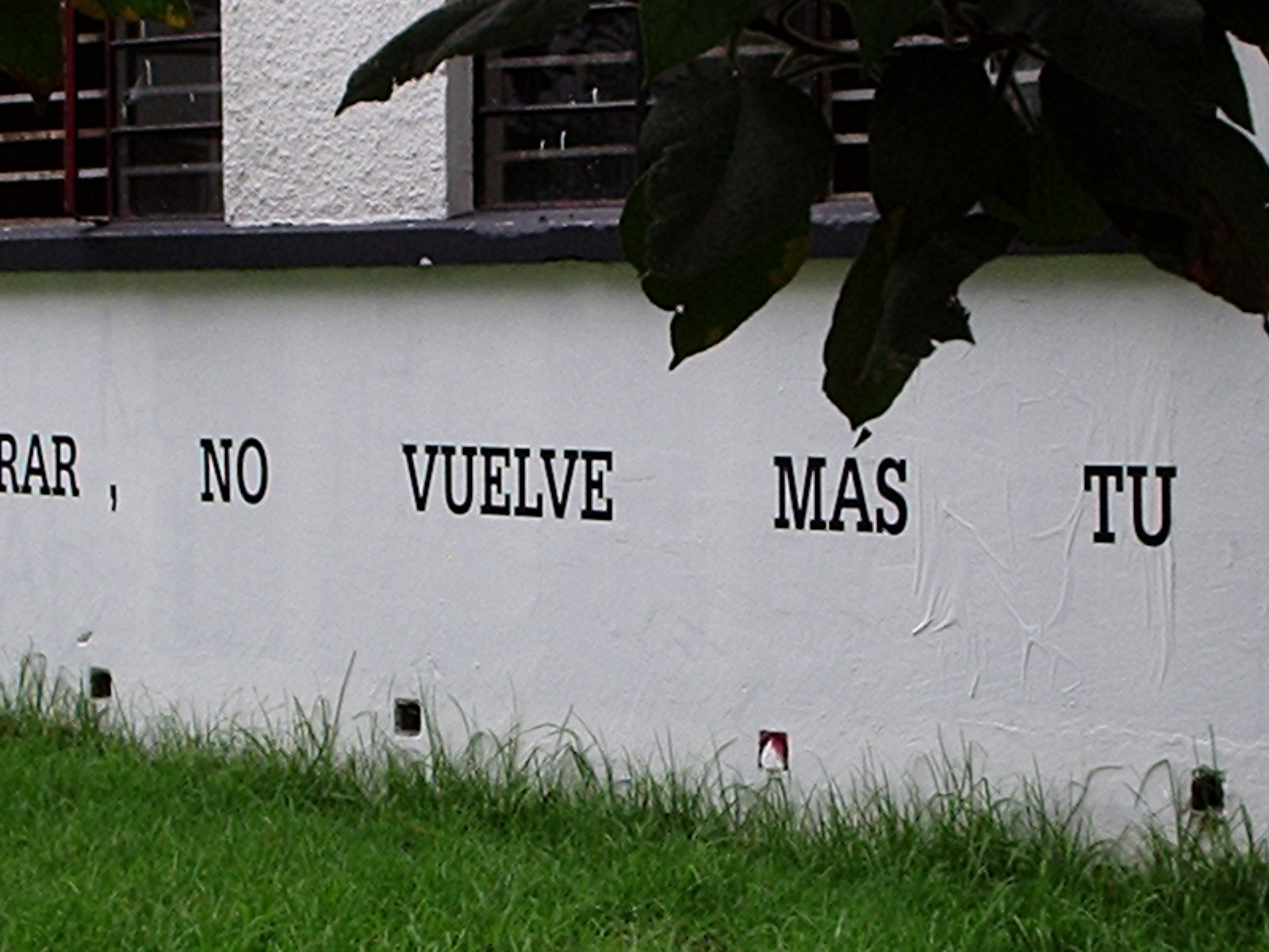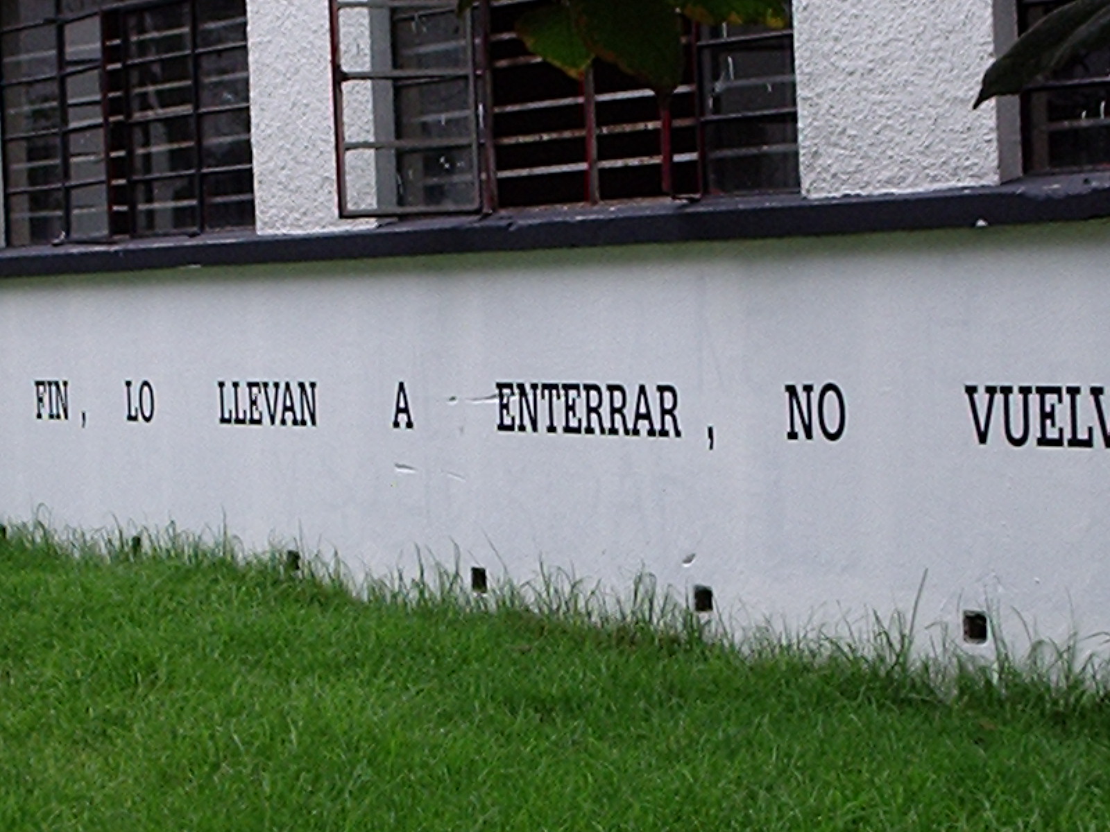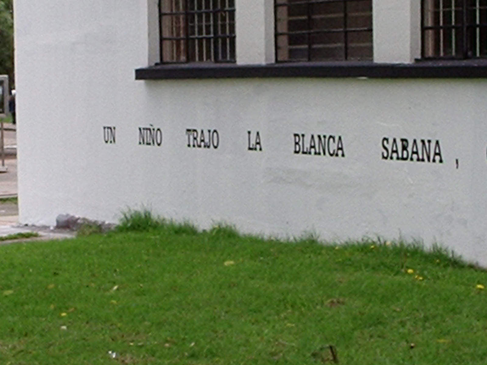 Desarrollamos la intervención escribiendo un texto que surgió de algunos pasajes de García Lorca y de la ronda infantil de Mambrú se fue a la guerra, este texto lo pusimos con plotter de corte sobre las paredes de los edificios de Diseño Grafico y de Idiomas en las paredes que dan a la entrada de la 26 rodeando el espectro visual de los transeúntes que entraban a la universidad en su camino hacia la Plaza Che o los edificios aledaños. Este texto lo acompañamos con la figura de un perro sobre las mismas paredes y en otros puntos en el suelo que generaban un recorrido.