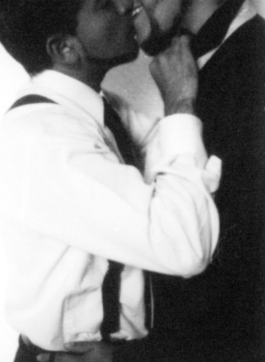 Esta es una serie fotográfica hecha con dos hombres homosexuales. Los dos trabajaban de corbata y el vestido servía para mitigar y confrontar la acción del beso.